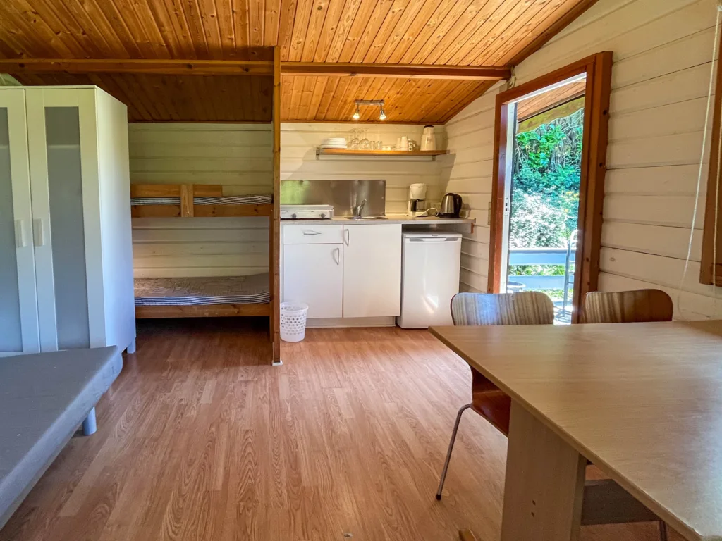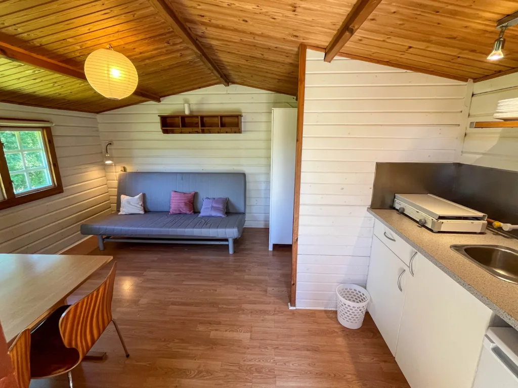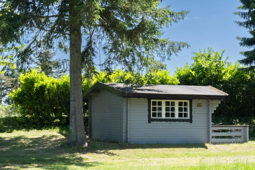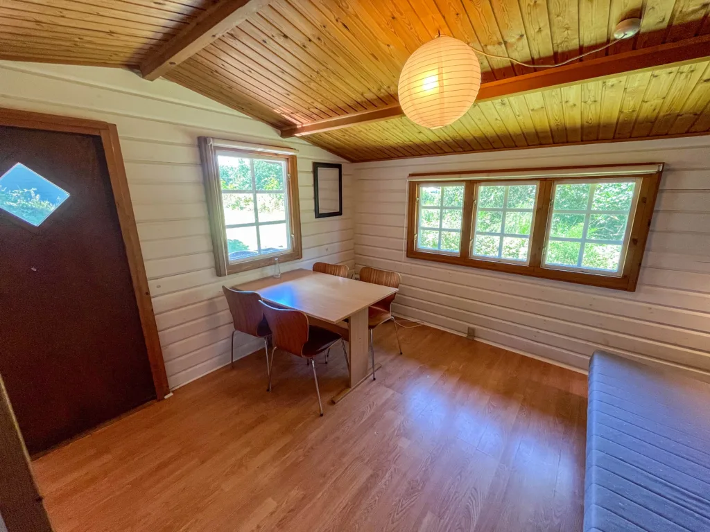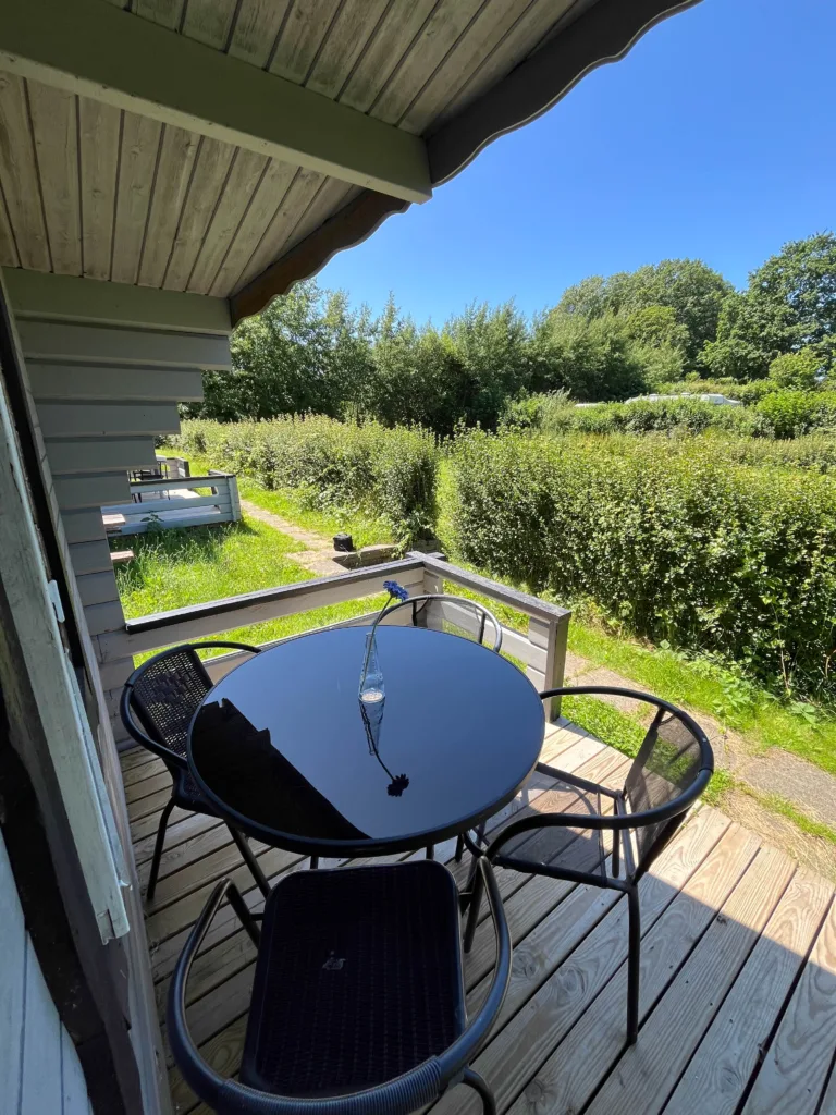 Oplev ægte hygge i vores granhytter på Hyttevej, omgivet af natur og med udsigt over en lille dam. Slap af på den solrige terrasse og nyd roen.